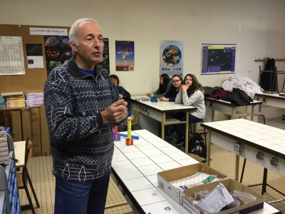 A partir de 16h45, l’entrée libre au gymnase a permis à d’autres élèves, parents, personnel du collège, élus municipaux… de découvrir le planétarium mais également les maquettes de constellations fabriquées par les membres du club et une exposition de l’AFA (Association Française d’Astronomie) s’intitulant « Ciel, miroir des cultures ». Ce moment d’échanges autour d’un goûter s’est révélé très chaleureux et riche de discussions et de futurs projets.