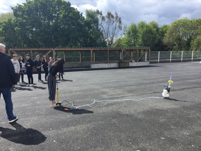 Le matin, les membres du club ont construit des fusées et les ont lancées à tour de rôle depuis la cour de récréation. Sous le regard ébahi de leurs camarades et du personnel de l’établissement, les fusées à air comprimé ont pu atteindre une quinzaine de mètre de hauteur !