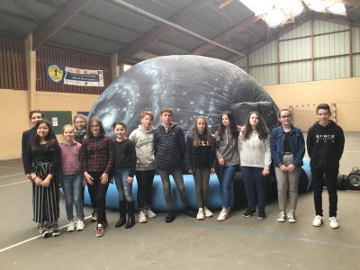 L’après-midi, les membres du club ainsi que tous les élèves de 6e du collège ont pu profiter d’une séance dans le planétarium itinérant installé au gymnase.