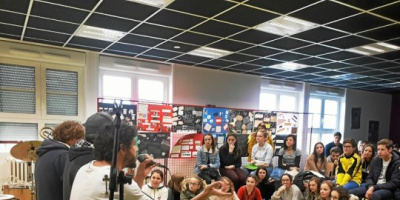Le matin, les élèves ont présenté leurs travaux au groupe et échangé sur leurs parcours artistiques ; l’après-midi était consacré au concert à la MJC. Tout le monde a été ravi de cette rencontre