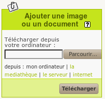 - En haut à gauche de la page de gestion de l’article dans l’espace privé (pour la création ou la modification d’un article) se trouve un bloc intitulé « Ajouter une image ou un document ».