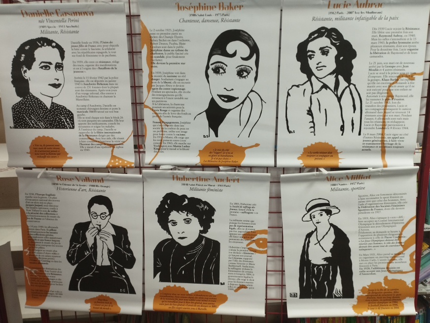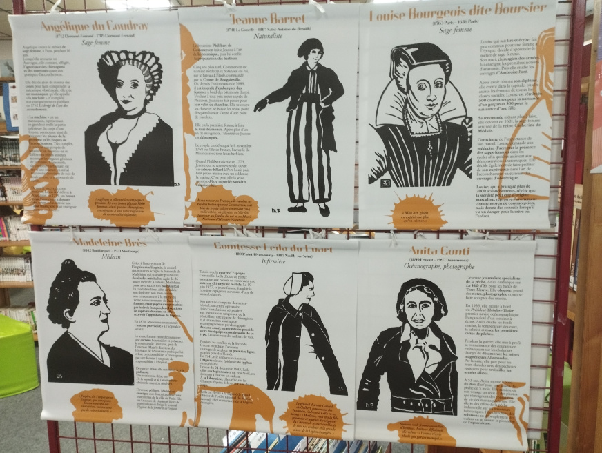 Sophie Degano a expliqué aux élèves la technique utilisée pour réaliser ces œuvres : la gravure sur linoléum, gravure en creux. (voir la vidéo : https://www.sophie-degano.com/) .Les gravures sont imprimées sous forme de kakémonos avec des contrastes entre le blanc et le noir pour représenter le courage et la détermination de ces femmes. Son travail a été exposé dans de multiples lieux en France et à l’étranger (musée de l’armée, Institut Français de Croatie à Zagreb etc).