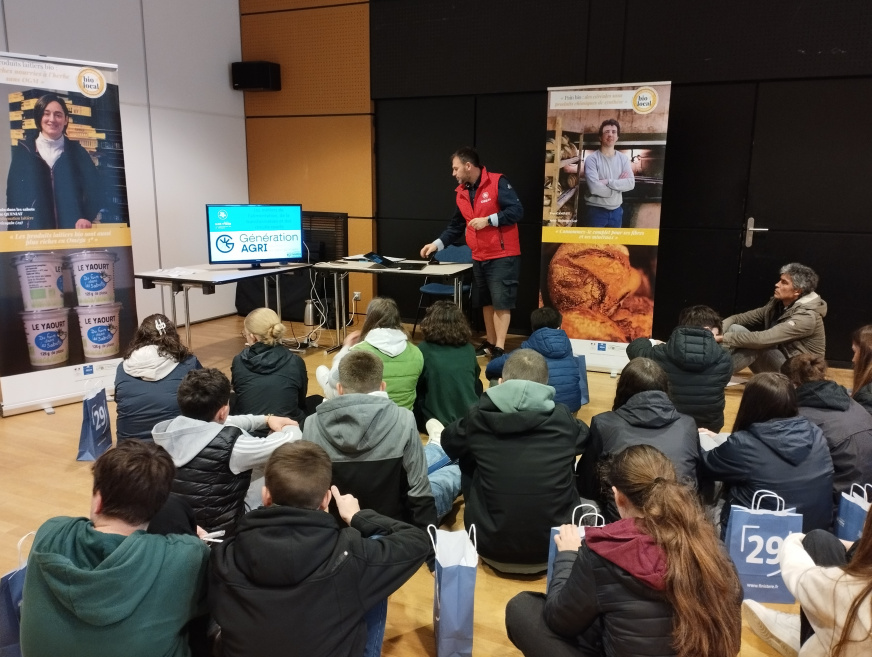 Mardi 25 mars 2025, les élèves de 4e ont participé à la journée de « Découverte des métiers de l’agriculture », organisée par le Département du Finistère en partenariat avec la Chambre régionale d’agriculture de Bretagne, l’ANEFA et Morlaix Communauté. Le matin un forum des métiers de l’agriculture était proposé sous forme de 10 ateliers. L’après-midi, M. et Mme Beuzit dans leur exploitation de bovins lait bio à Kerbabu et Mme Declerck à Lesquinquit dans son exploitation d’horticulture bio spécialisée dans la production de fleurs coupées ont chaleureusement accueilli les élèves et expliqué leur métier et les métiers liés à leur travail.